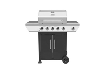 Stainless steel control panel with easy-to-grip knobs. Ceramic side burner. Easy to clean with removable drip tray. Built-in thermometer. Two wheels to move and store your braai. Two doors for gas cylinder storage. Electronic ignition system.
