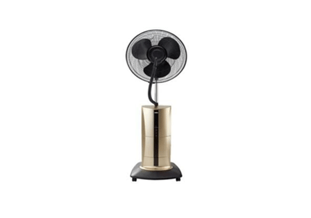 16 inch/40cm stand fan with mist Function 100w With remote Negative ion generation function 3 blades Rose Gold finish 7.5-hour timer function Water tank capacity is 1.5L Atomization of 200ml/Hour Three air flow modes - Normal, natural and sleep Adjustable height