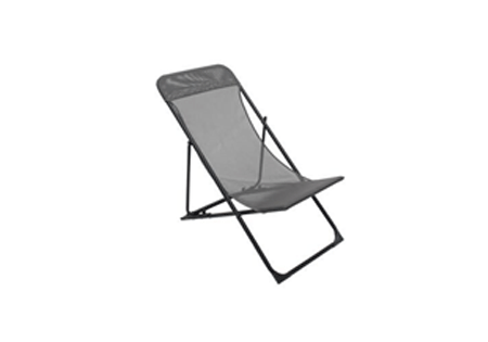 This sling chair BIGANOS can be easily placed on a small patio , in a garden or on the beach , with 3 positions for the back , it is convenient for the rest ; Easy to fold and to carry , the frame is in steel with powder coating for a good resistance outdoor and the seat in pvc coated polyester to let the fresh pass through the fiber , the open size of this chair is L98/86 x l55,5 x H 76/90 cm
