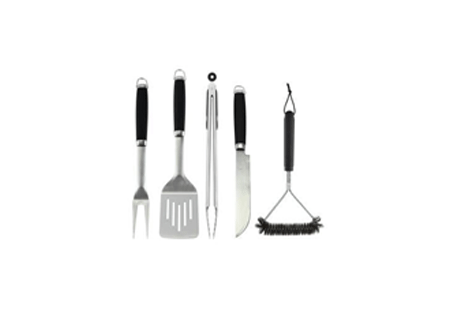 Braai accessory set of 5 stainless steels tools with case, including spatula, tongs, fork, knife, T grill brush Convenient Design: These braai utensils hanging loops for you to hang easily. They also come with storage bag for easy storage. These braai accessories is easy to carry